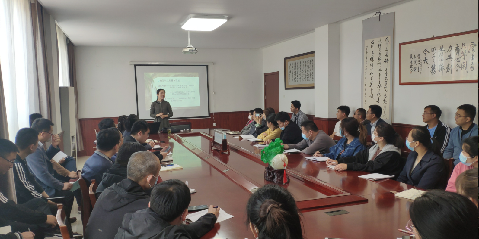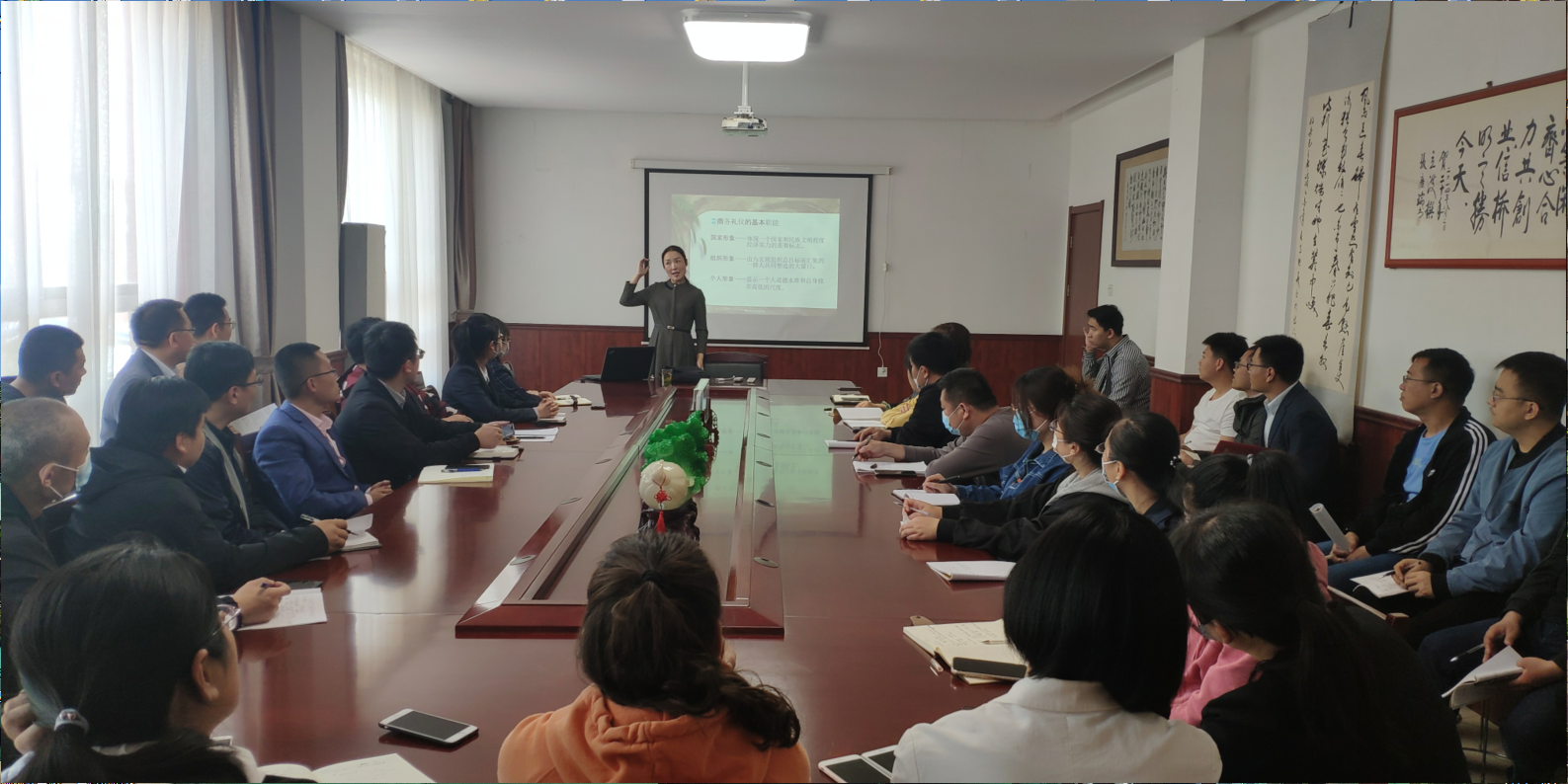 5月5號,為提高公司整體形象,提高員工業(yè)務(wù)水平,公司請禮儀老師來公司培訓(xùn),經(jīng)過老師的講解,公司開始實施全體員工著裝得體的政策,周一至周五全部著西裝、皮鞋。