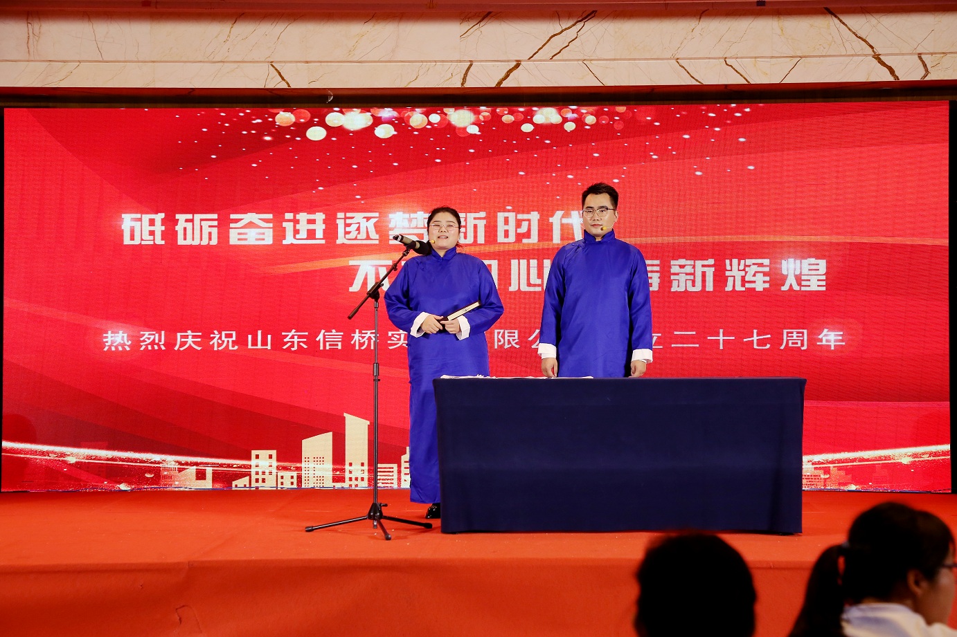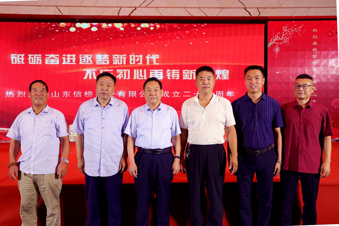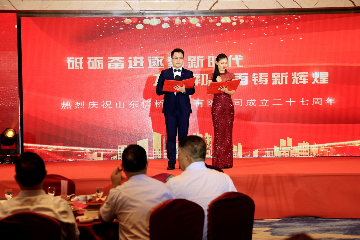 歲月如歌,風(fēng)霜如畫(huà),二十七年彈指一揮間,山東信橋?qū)崢I(yè)有限公司(以下簡(jiǎn)稱山東信橋)迎來(lái)了二十七周年的生日。二十七年來(lái),信橋人在激烈的市場(chǎng)競(jìng)爭(zhēng)中奮力拼搏、砥礪前行,接受了市場(chǎng)風(fēng)風(fēng)雨雨的洗禮,取得了累累碩果。為了慶祝這一特殊的日子,2021年8月8日,以“拼搏進(jìn)取,開(kāi)創(chuàng)新時(shí)代”為主題的山東信橋二十七周年慶典活動(dòng)在寶盛大酒店舉行。